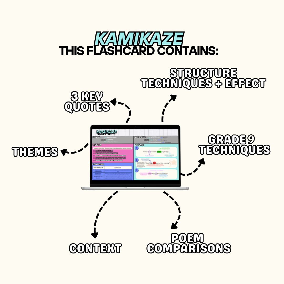 The only GCSE English Literature Poetry Resource you'll need to get the higher grades! This KAMIKAZE Flashcard includes: