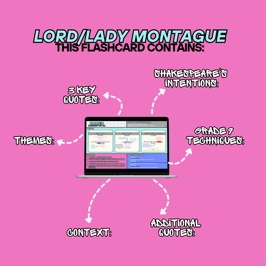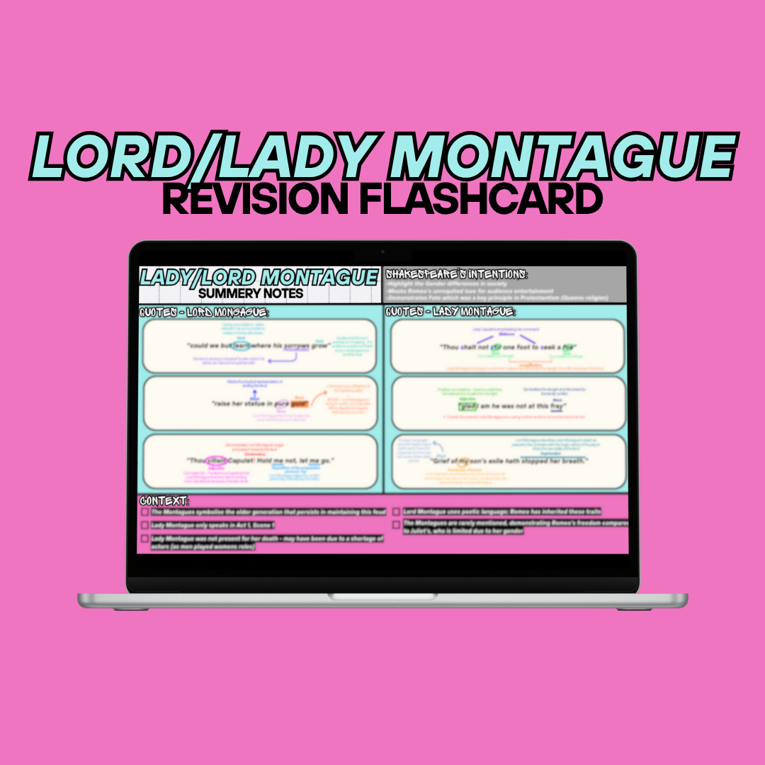 The only GCSE English Literature Romeo and Juliet Resource you'll need to get the higher grades! This LADY/LORD MONTAGUE Flashcard includes: