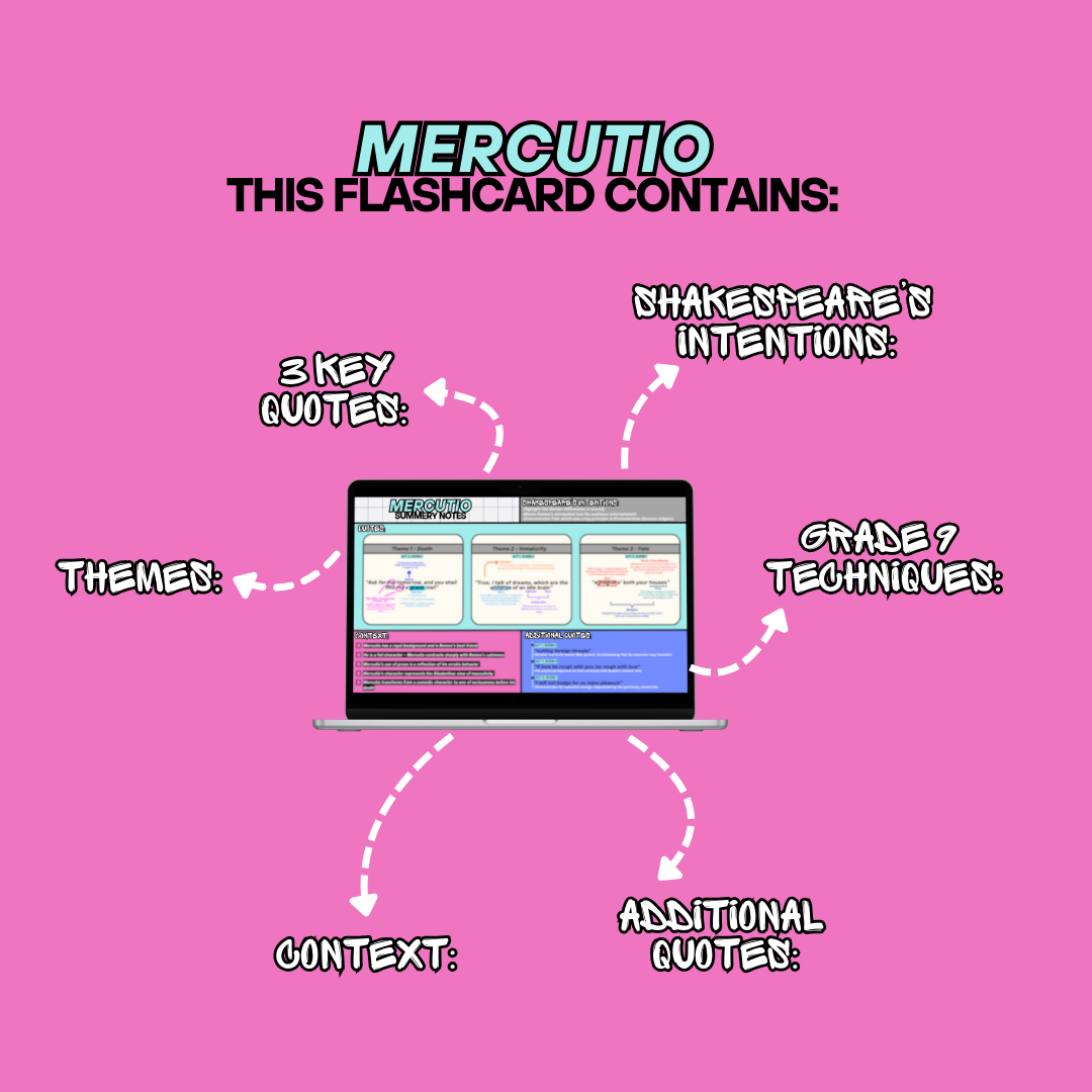 The only GCSE English Literature Romeo and Juliet Resource you'll need to get the higher grades! This MERCUTIO Flashcard includes: