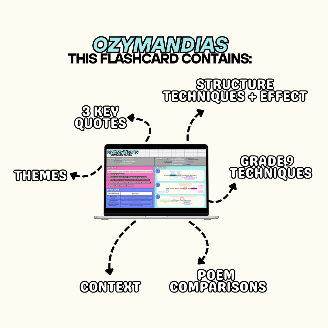 The only GCSE English Literature Poetry Resource you'll need to get the higher grades! This OZYMANDIAS Flashcard includes: