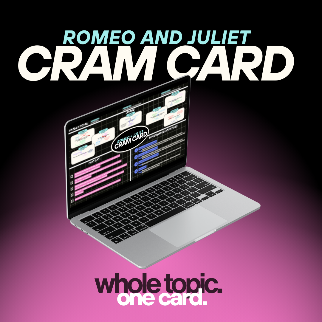 The Whole of a Romeo and Juliet, In One Flashcard! The Only Resource You Need To Achieve Higher Grades! This Romeo and Juliet Cram Card Includes: