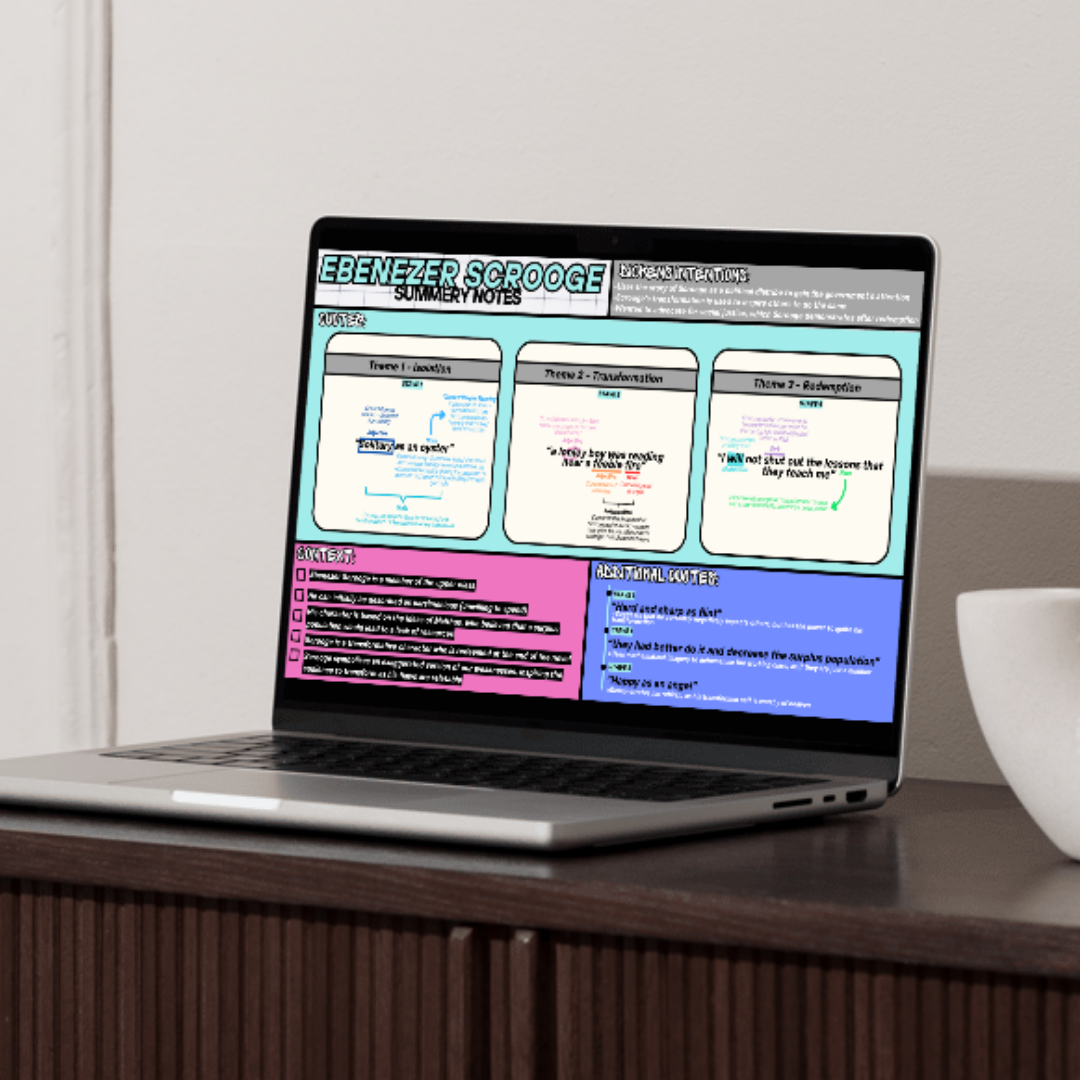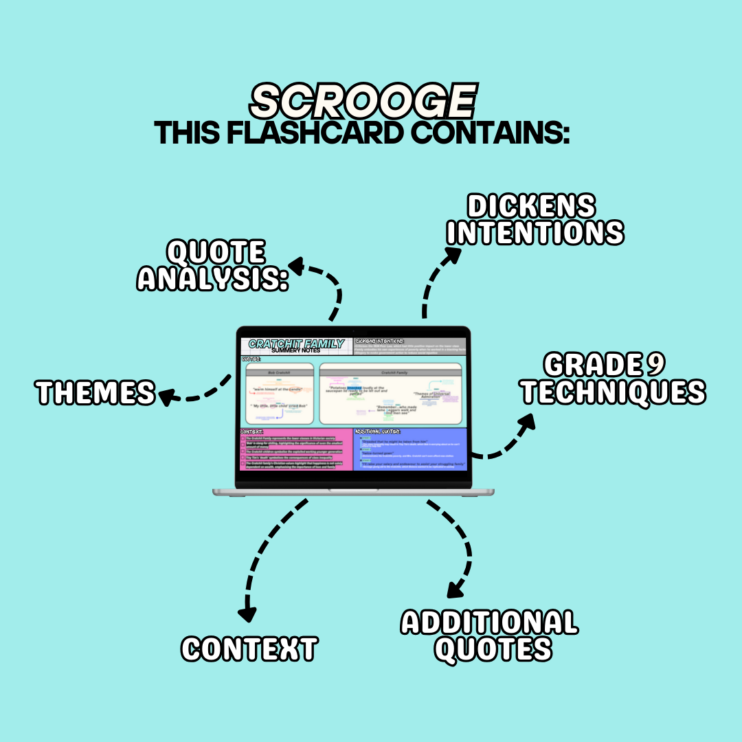The only GCSE English Literature Christmas Carol Resource you'll need to get the higher grades! This EBENEZER SCROOGE Flashcard includes:
