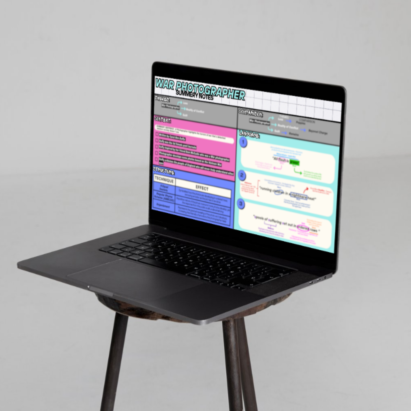 The only GCSE English Literature Poetry Resource you'll need to get the higher grades! This WAR PHOTOGRAPHER Flashcard includes:
